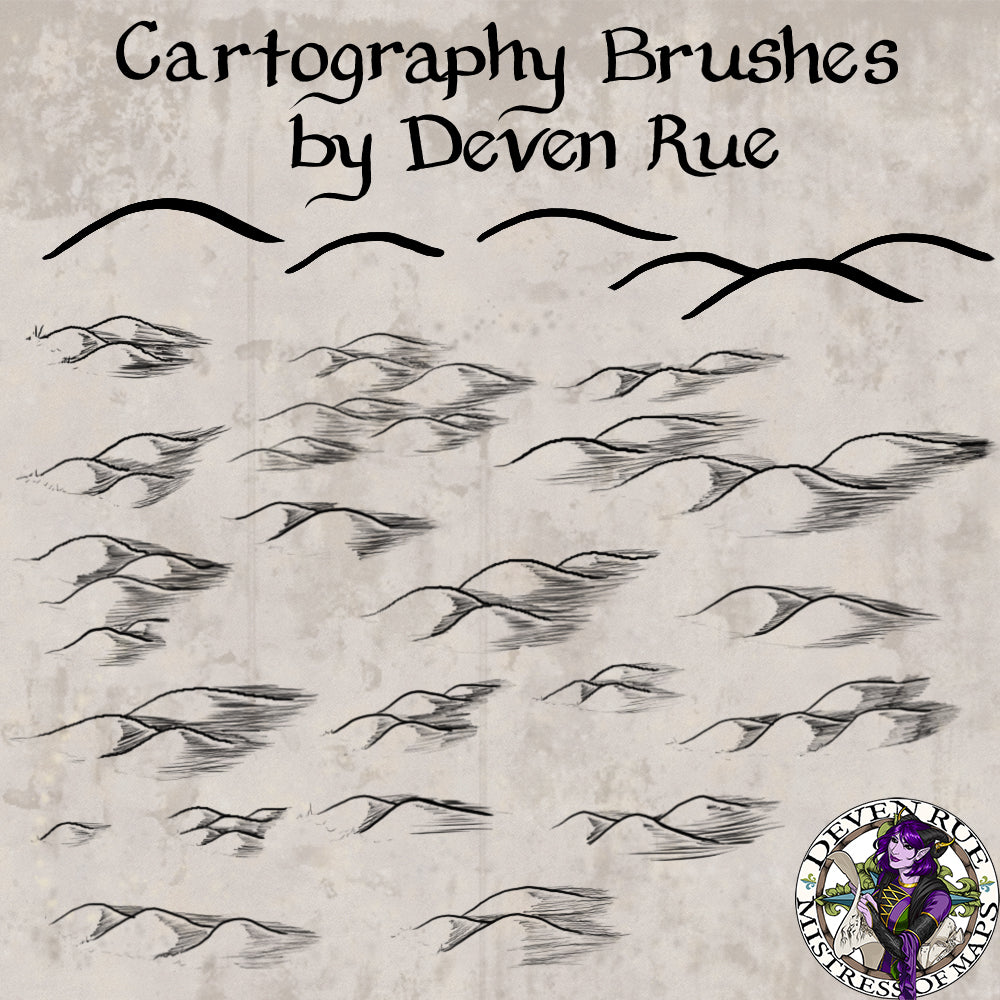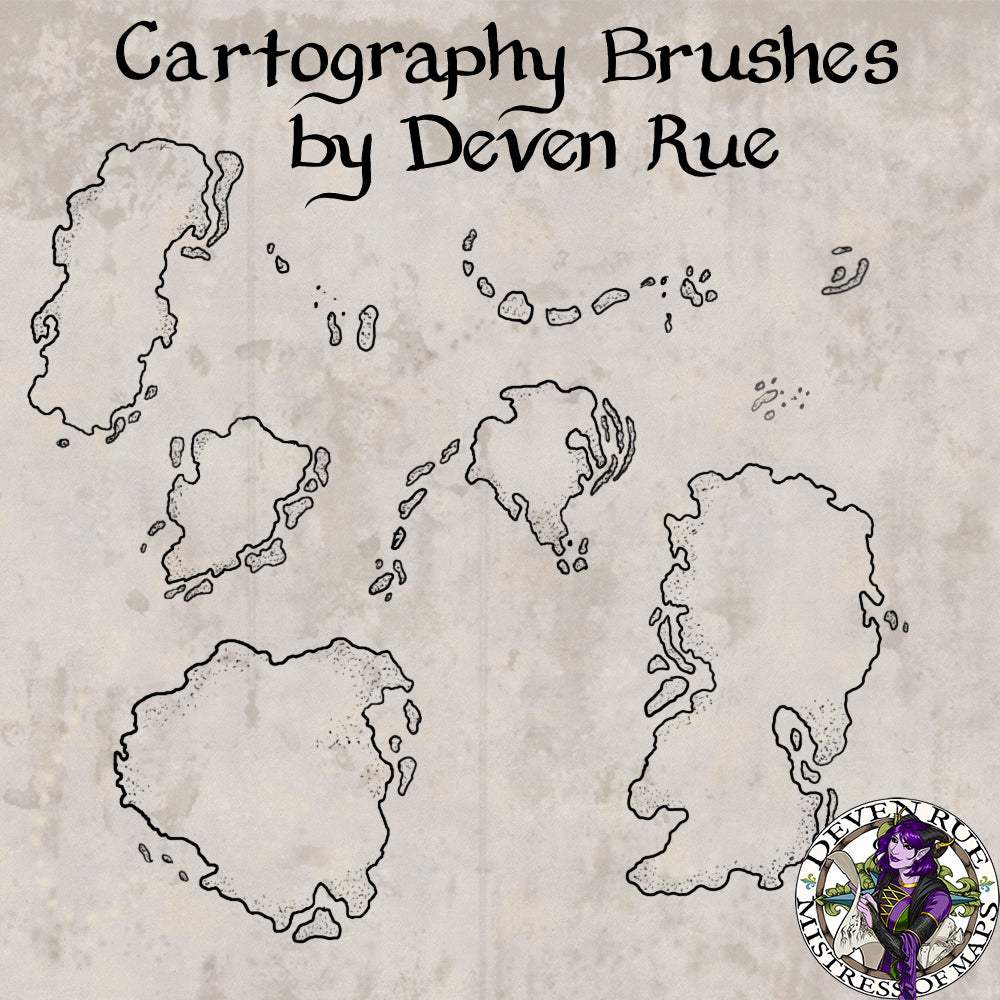 Get all of Deven's world & regional map making brushes in ONE pack! Create detailed in-world maps with these easy to use hand-drawn cartography brushes! Brushes work in Photoshop, Clip Studio Paint, Procreate, and any program that uses ABR extensions. Zip file download will be available upon purchase. These brushes are sorted into folders to make it super easy to find the brush you want.